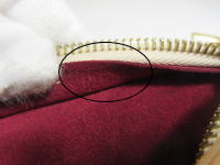 ファスナーの裏側の向かって右側から約6センチの場所に製造番号の刻印あり